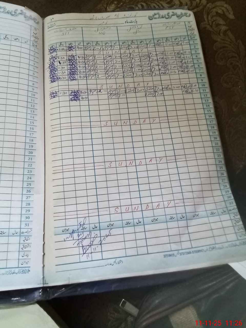 | CNIC | Full Name | Designation | R/C | Absence During Last Calender Month |