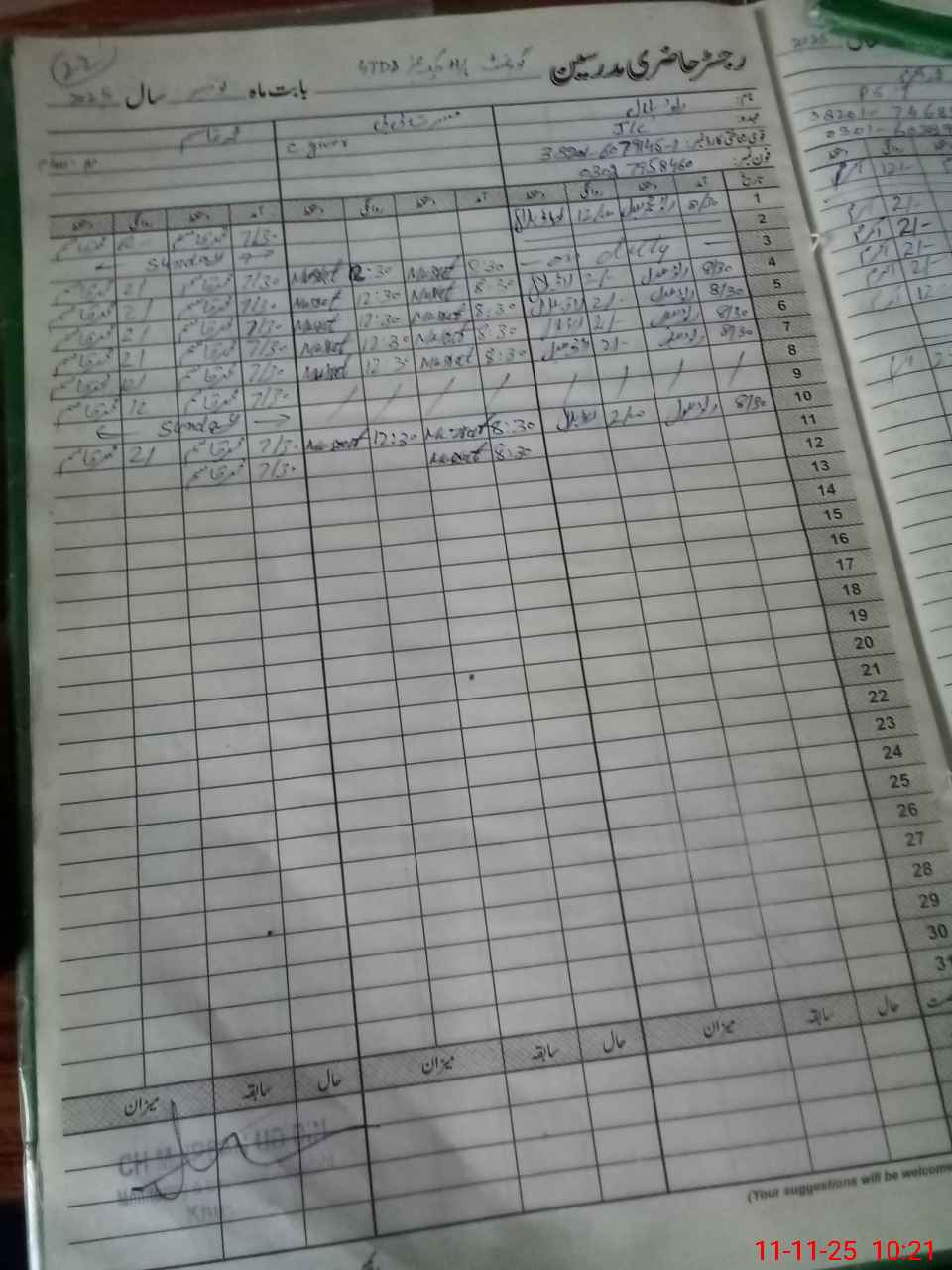 | CNIC | Full Name | Designation | R/C | Absence During Last Calender Month |