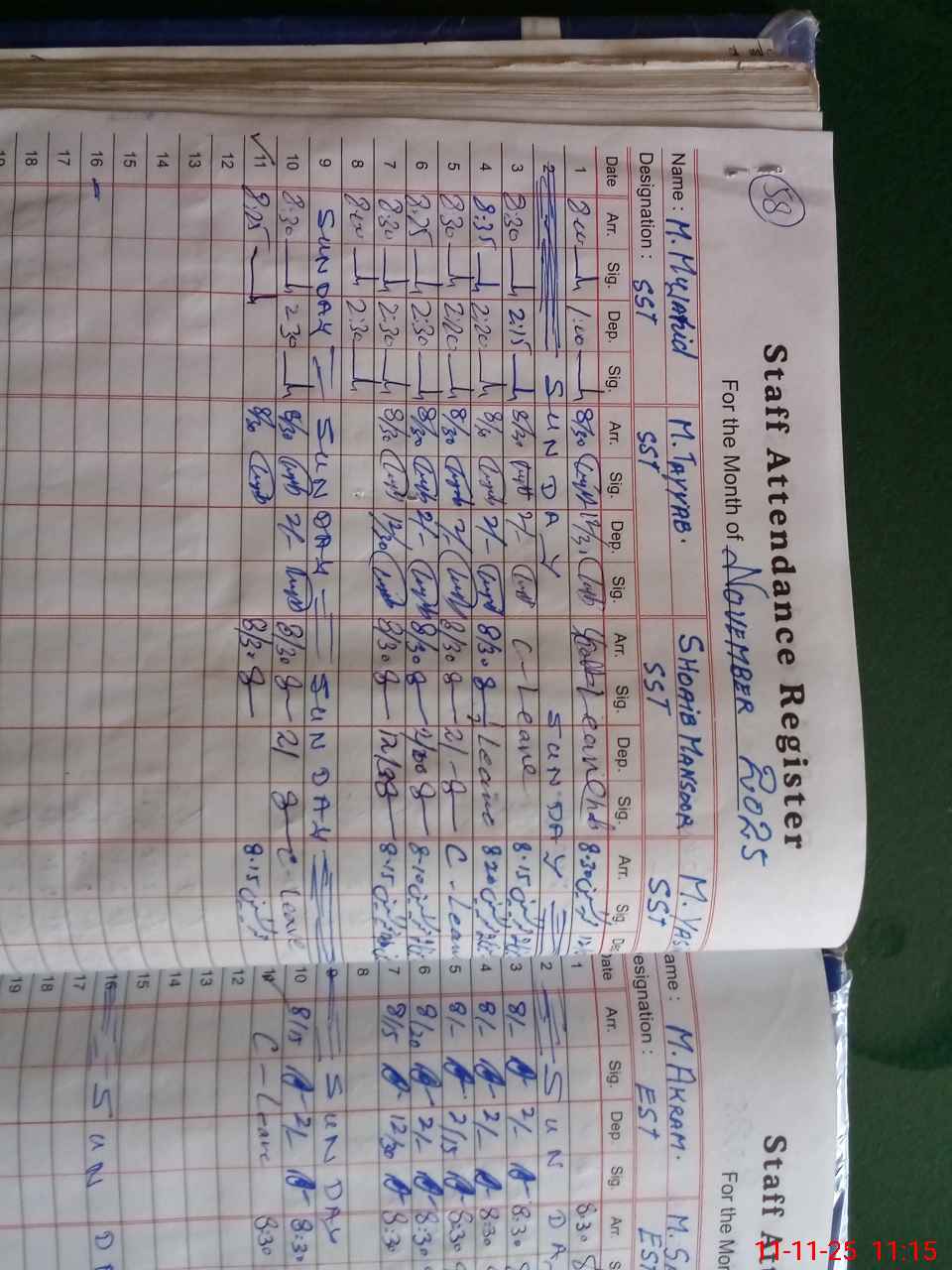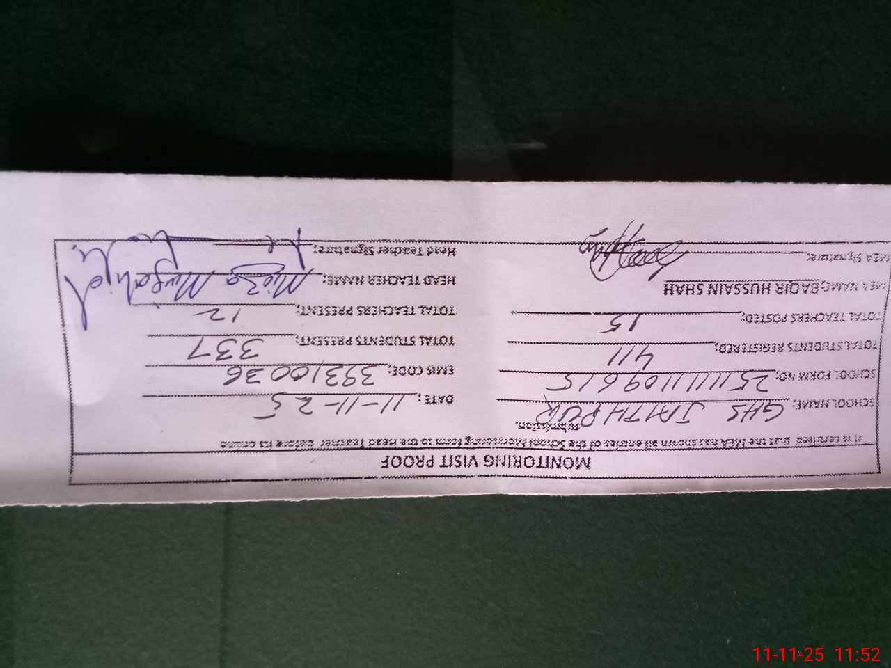 | Monitoring Date: 11-11-2025 | Start Time: 11-11-2025 11:09 AM | End Time: 11-11-2025 11:54 AM | Name of MEA: BA**** HU**** SH**** | |