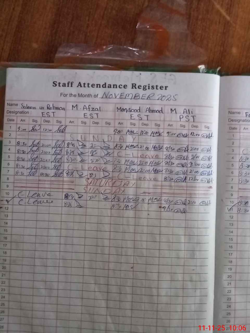 | CNIC | Full Name | Designation | R/C | Absence During Last Calender Month |