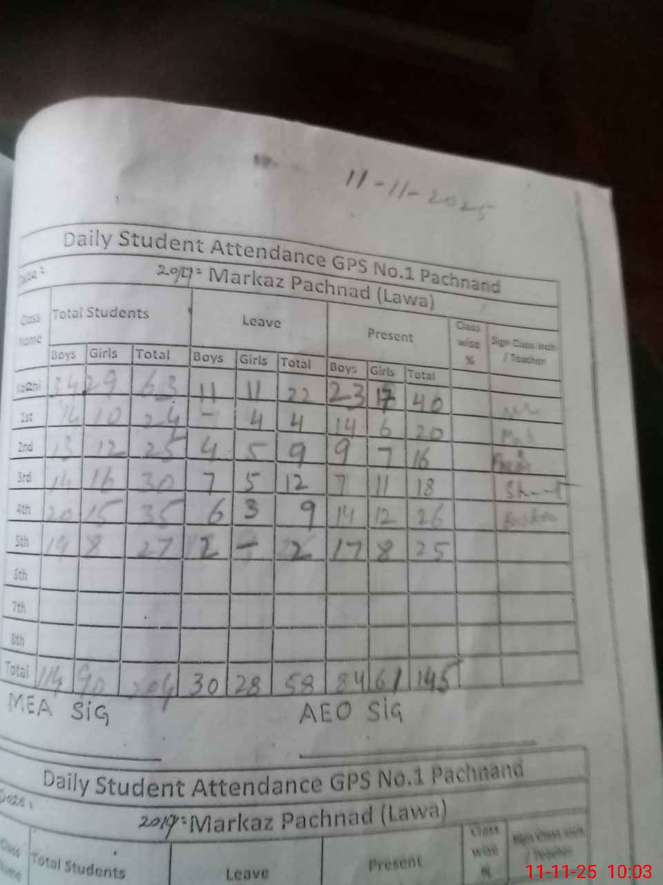 | Remarks (Use Separate Page if Required): As per sis 201 students whereas as per register 204 today head count 145 | |||||