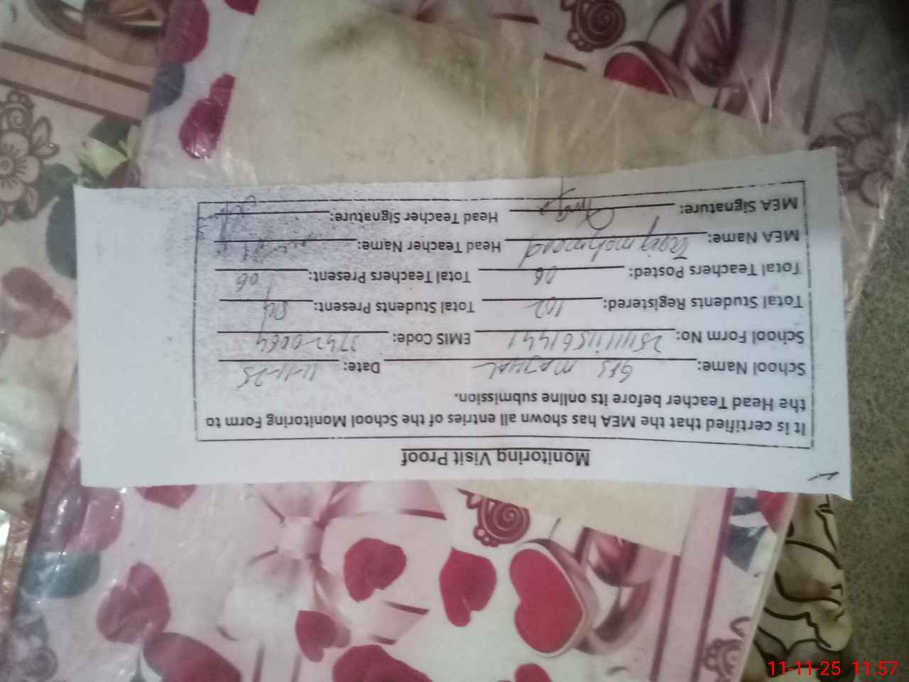 | Certified that this School was Inspected by the Undersigned MEA/DMO Today and the Information Stated Above is as Per Record. | |||||