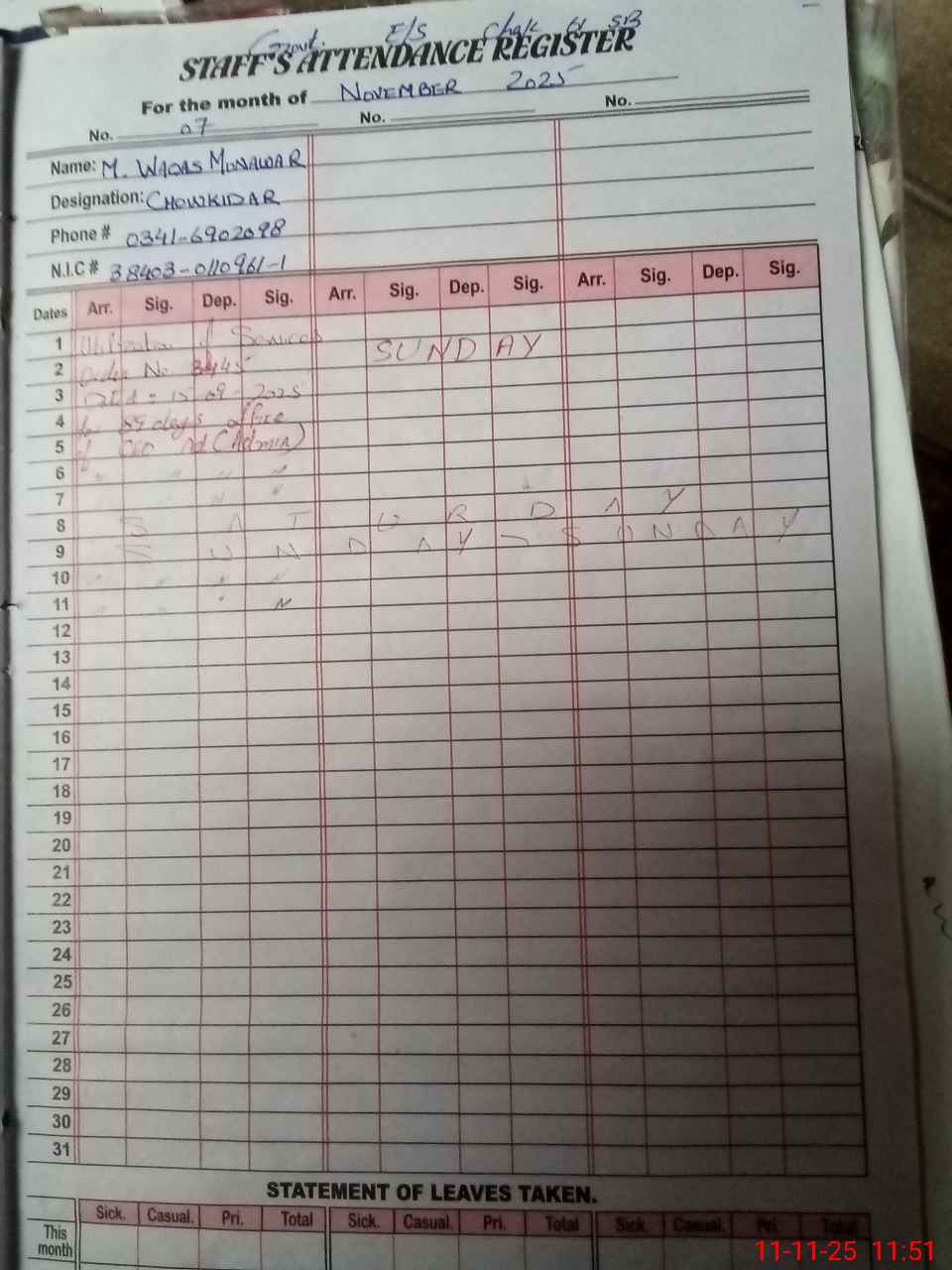 | 38**** | Mu**** Wa**** Mu**** | CCHIUKIDAR | 0 | 30 | 0 | 0 | 0 | 0 | 0 | 0 | 0 | Absent (Un-Authorized) | |