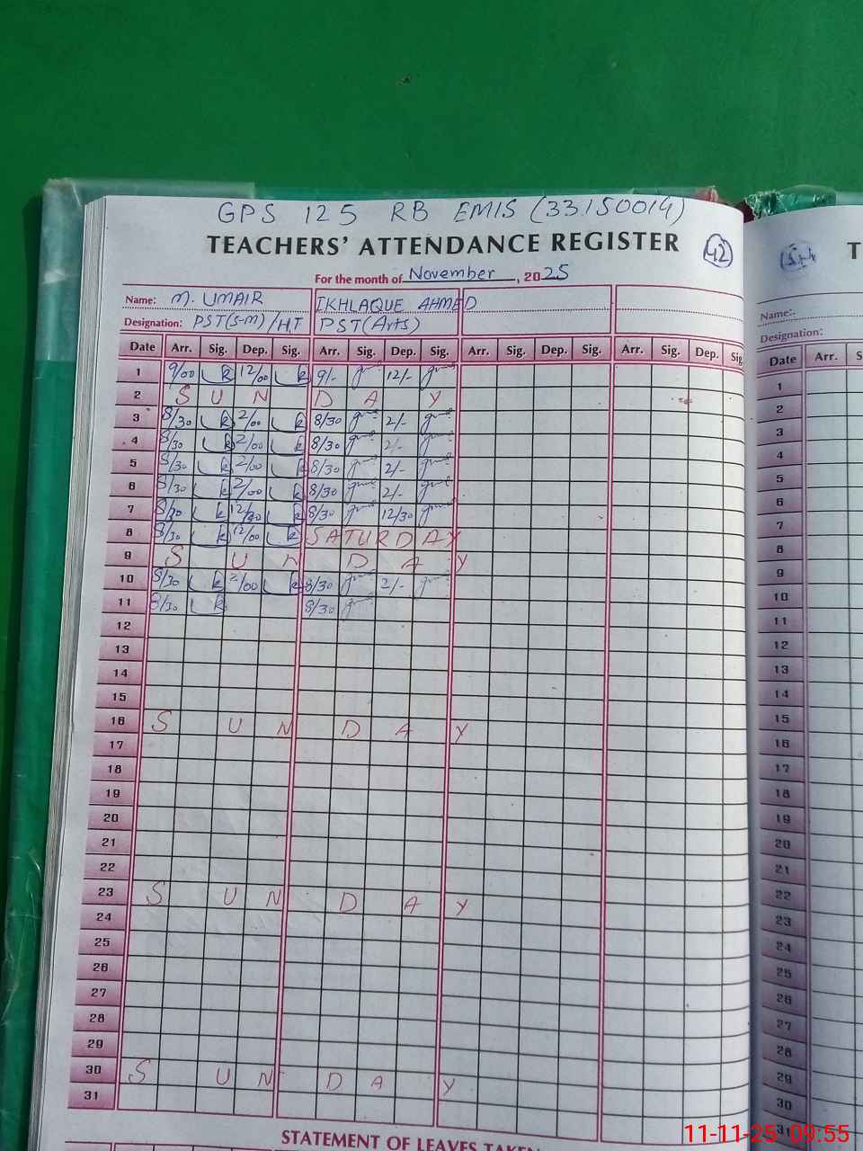 | Name: MU**** RA**** Designation: (School Headmaster's/Headmistress's) PST Phone/Cell Number: 03**** |