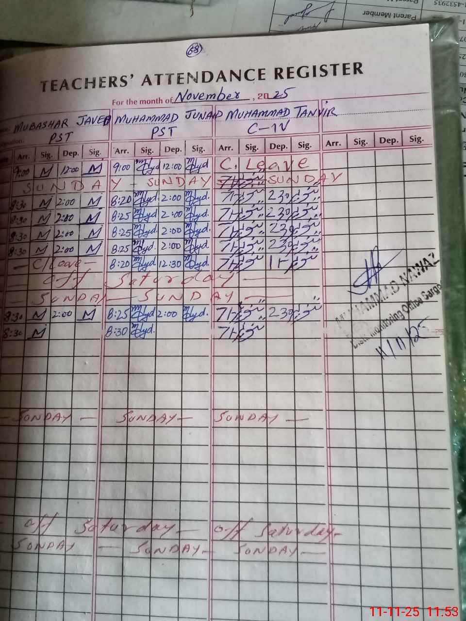 | Name: MU**** IS**** Designation: (School Headmaster's/Headmistress's) PST Phone/Cell Number: 03**** |