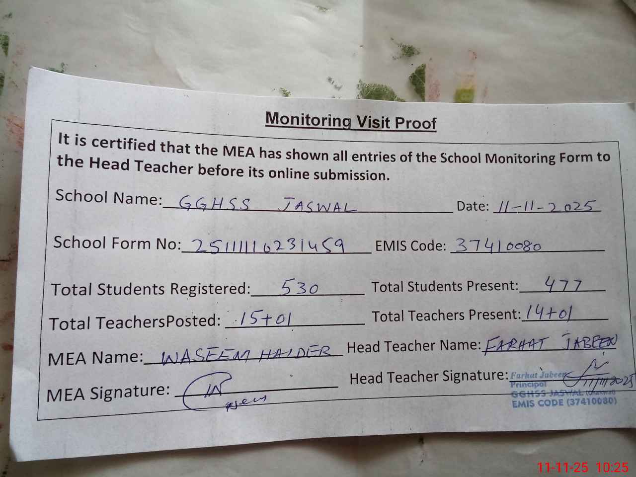 | EMIS Code: 37410080 | Name of School: GGHSS JASWAL | |||