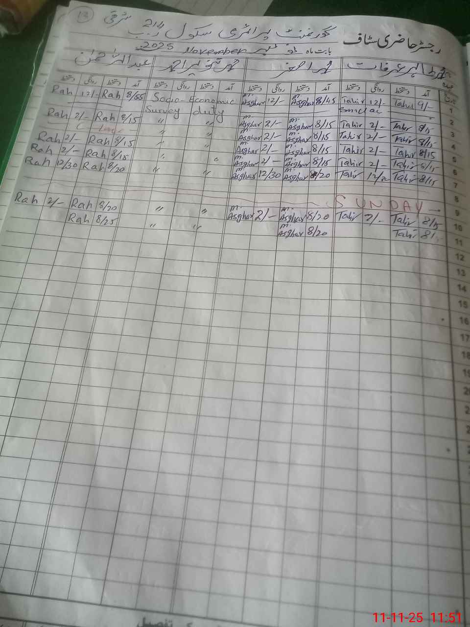 | CNIC | Full Name | Designation | R/C | Absence During Last Calender Month |