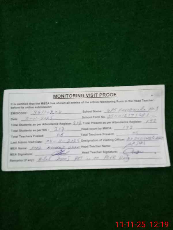 | EMIS Code: 34110204 | Name of School: GPS FEROZE WALA NO.1 | |||