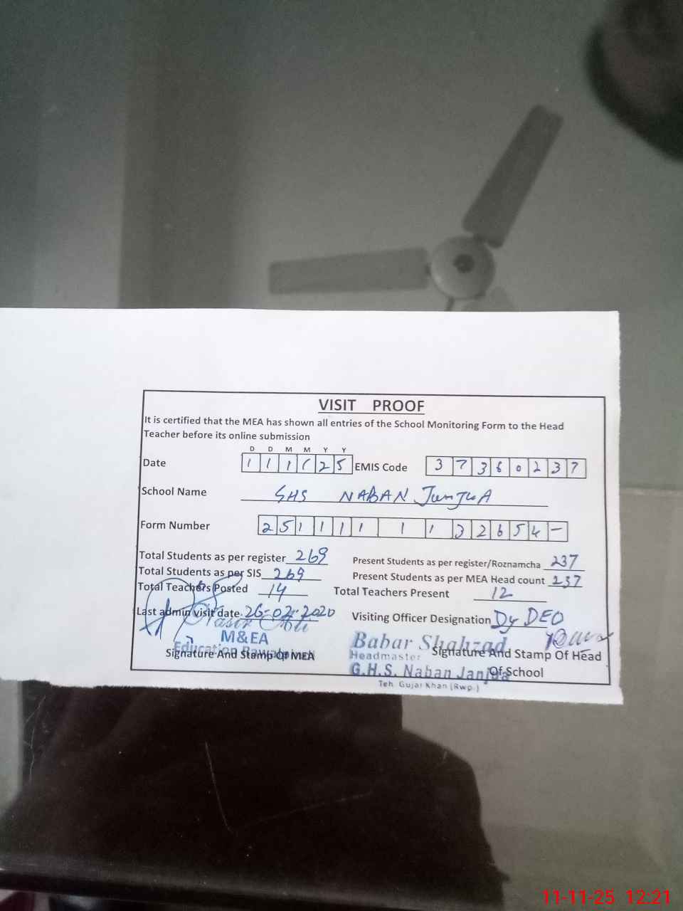 | EMIS Code: 37360237 | Name of School: GHS NABAN JANJUA | |||
