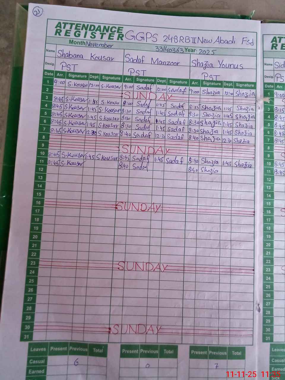 | CNIC | Full Name | Designation | R/C | Absence During Last Calender Month |