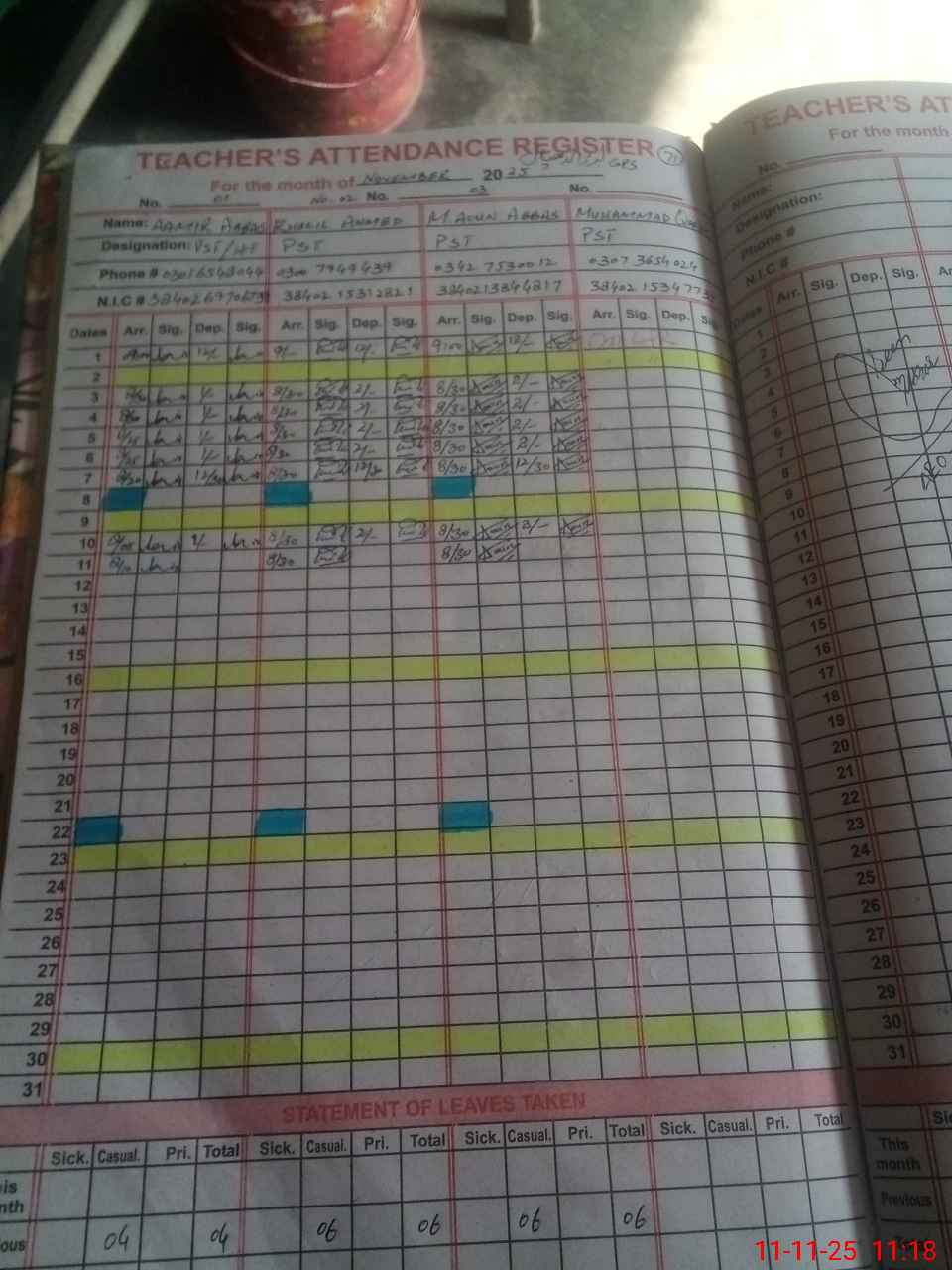 | Name: AA**** AB**** Designation: (School Headmaster's/Headmistress's) PST Phone/Cell Number: 03**** |