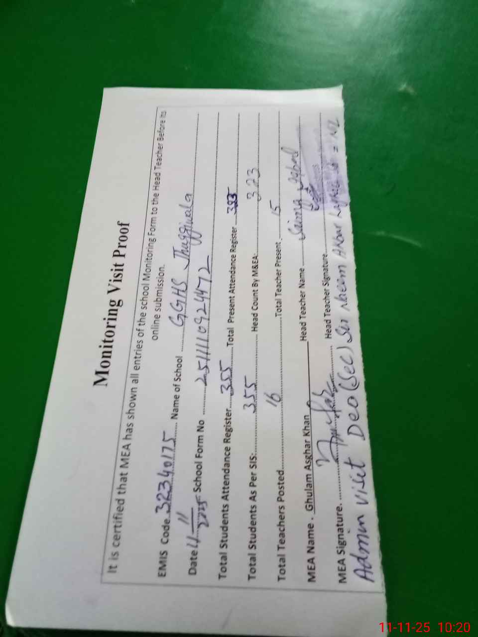 | EMIS Code: 32340175 | Name of School: GGHS JHUGGI WALA | |||