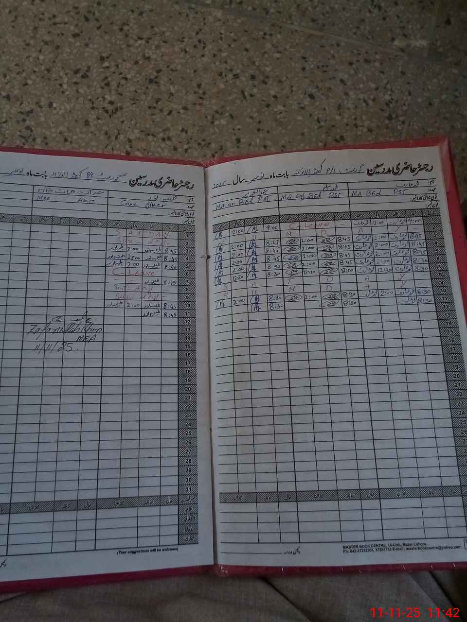 | Monitoring Date: 11-11-2025 | Start Time: 11-11-2025 11:09 AM | End Time: 11-11-2025 11:43 AM | Name of MEA: ZA**** UL**** KH**** | |