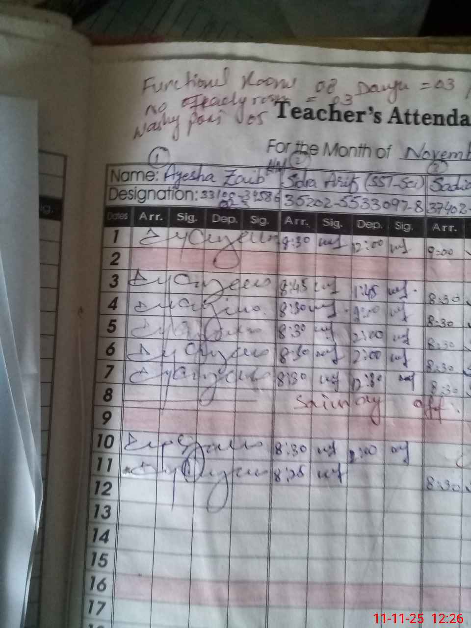 | Name: Ay**** Za**** Designation: (School Headmaster's/Headmistress's) Hm Phone/Cell Number: 03**** |