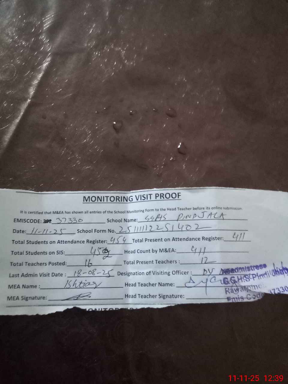 | EMIS Code: 37330501 | Name of School: GGHS PIND JHATLA | |||