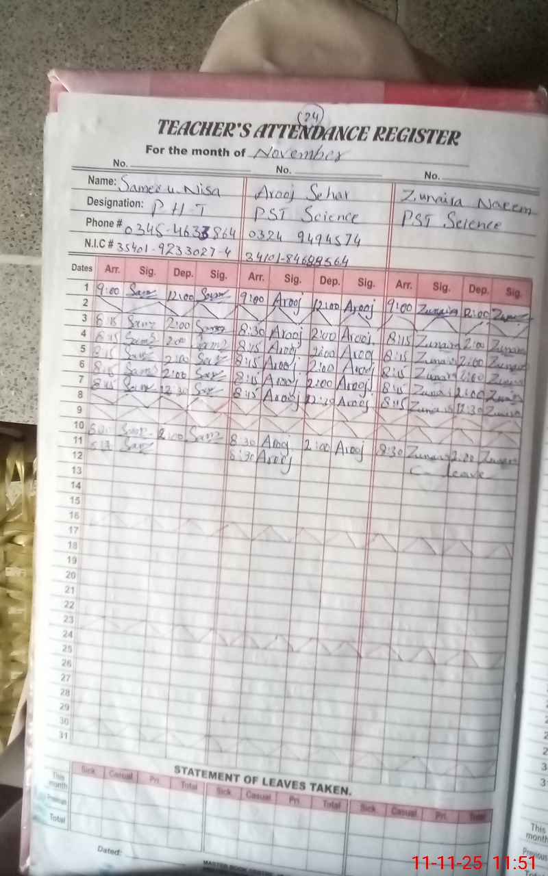 | Name: SA**** AL**** AS**** Designation: (School Headmaster's/Headmistress's) PST Phone/Cell Number: 03**** |