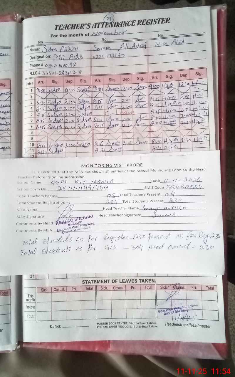 | EMIS Code: 35420554 | Name of School: GGPS KOT YAQOOB | |||