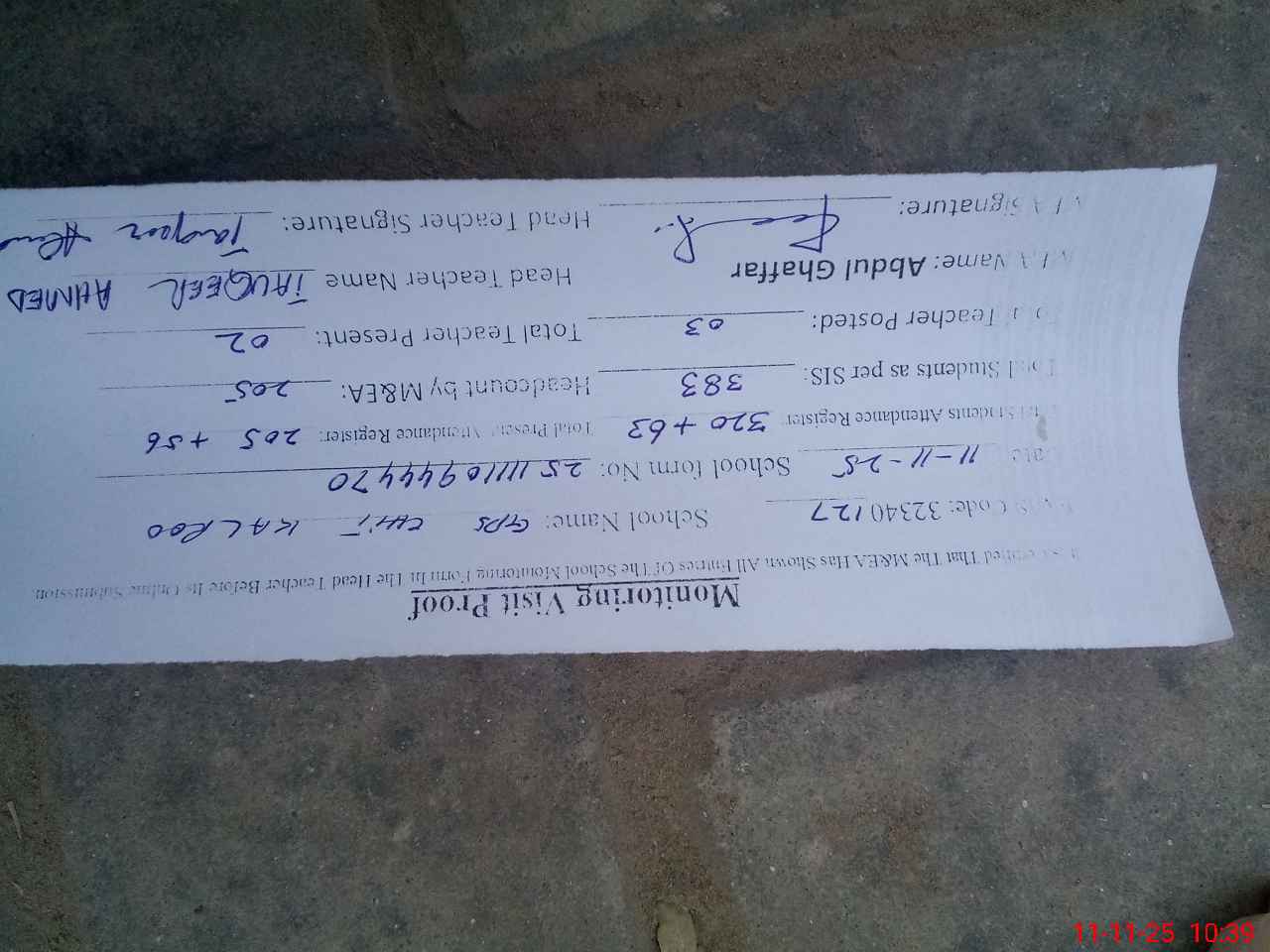 | Attendance Register | Head Teacher | MEA with School | Visit Proof |