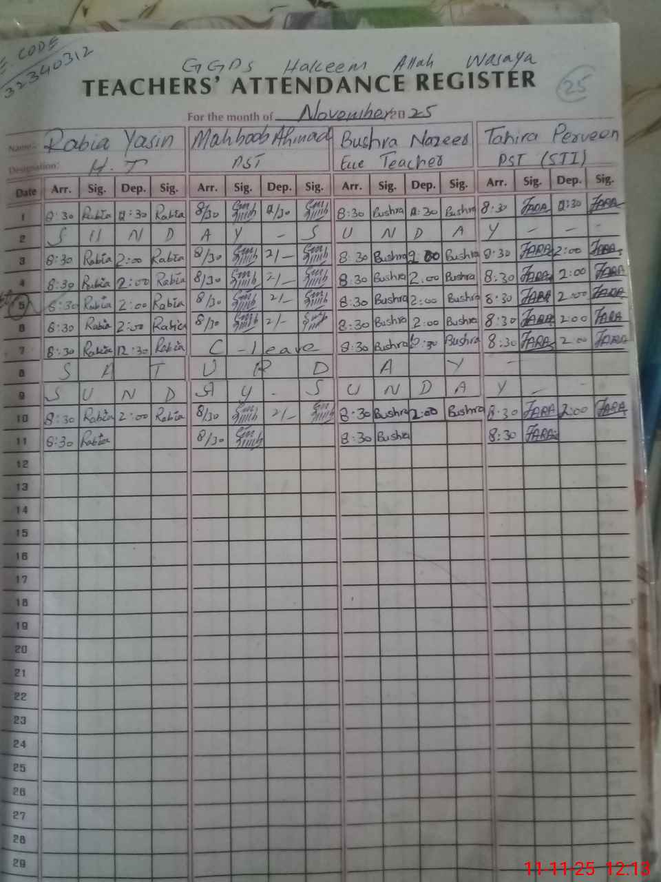 | EMIS Code: 32340312 | Name of School: GGPS HAKEEM ALLAH WASAYA | |||