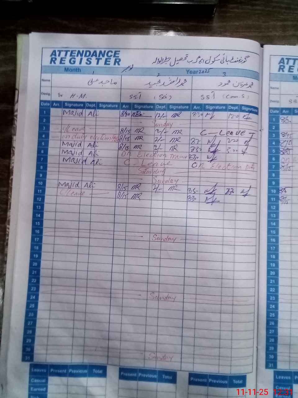 | CNIC | Full Name | Designation | R/C | Absence During Last Calender Month |