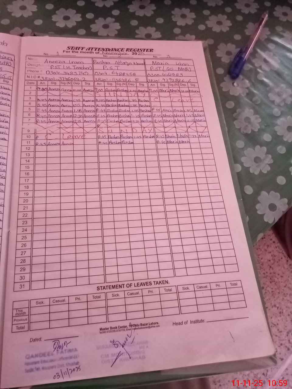 | Name: FA**** BI**** Designation: (School Headmaster's/Headmistress's) PST Phone/Cell Number: 03**** |