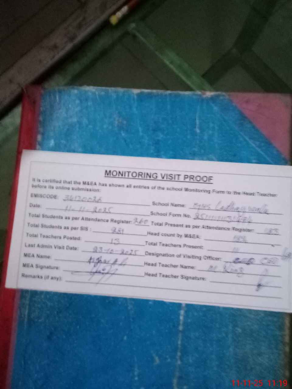 | EMIS Code: 34120026 | Name of School: GHS LADHAY WALA CHEEMA | |||