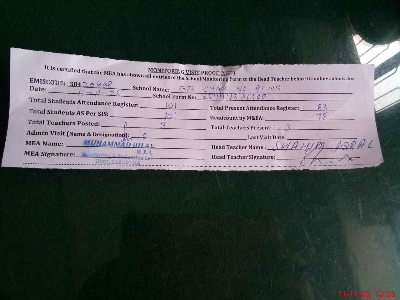 | EMIS Code: 38420468 | Name of School: GPS CHAK NO.81 NB | |||
