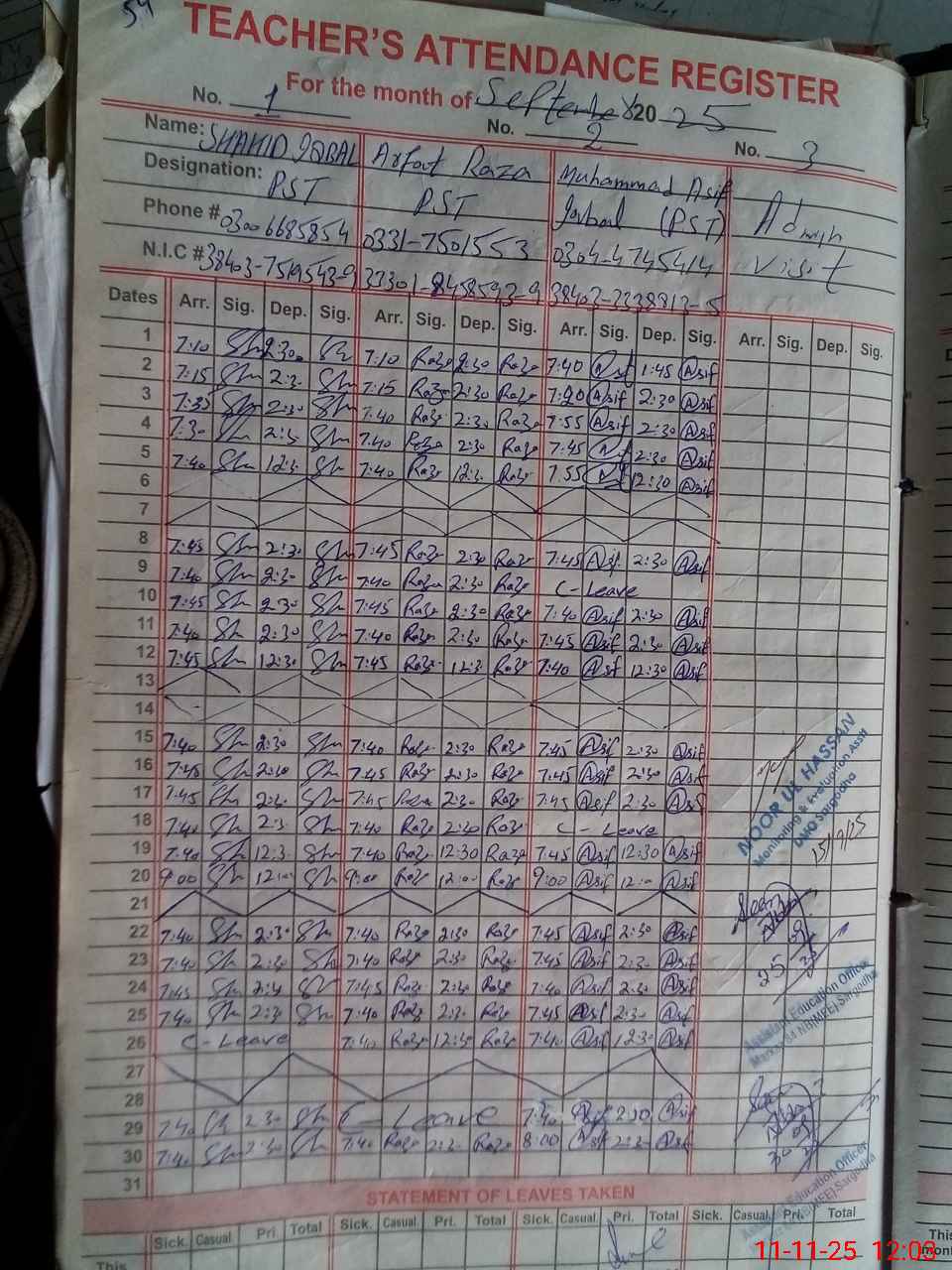 | Name: SH**** IQ**** Designation: (School Headmaster's/Headmistress's) PST Phone/Cell Number: 03**** |