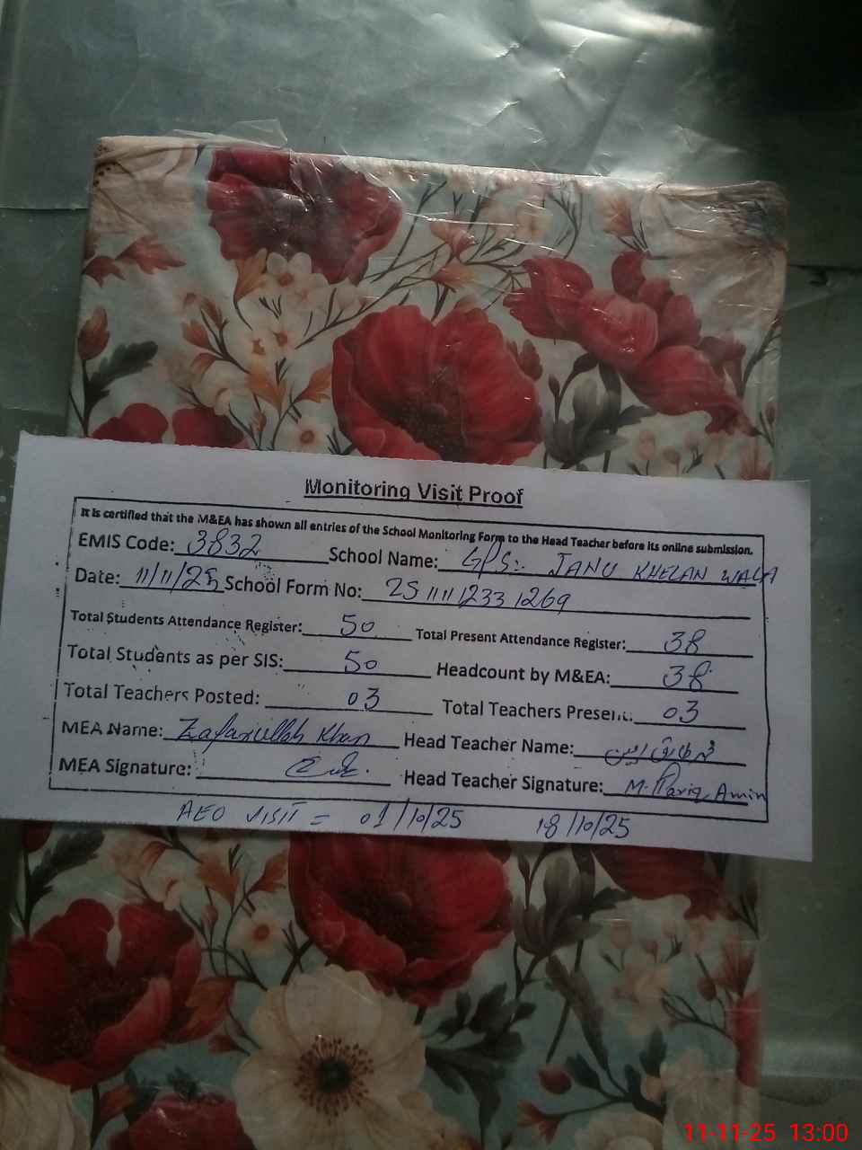 | Attendance Register | Head Teacher | MEA with School | Visit Proof |