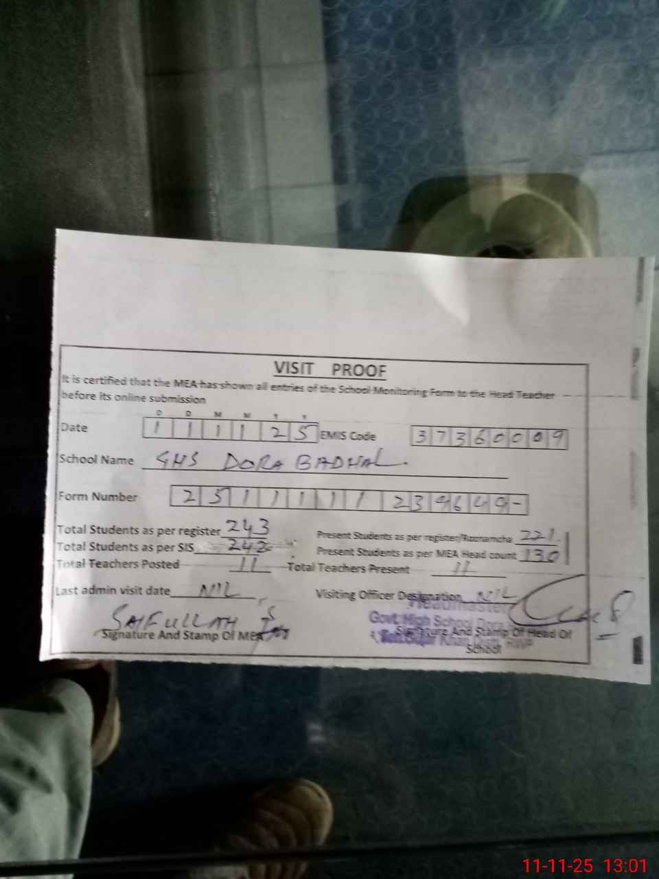 | EMIS Code: 37360009 | Name of School: GHS DORA BUDHAL | |||