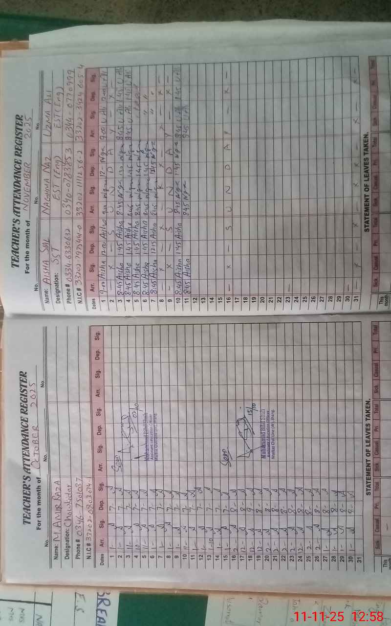 | Name: AY**** SI**** Designation: (School Headmaster's/Headmistress's) S.S.T Phone/Cell Number: 03**** |