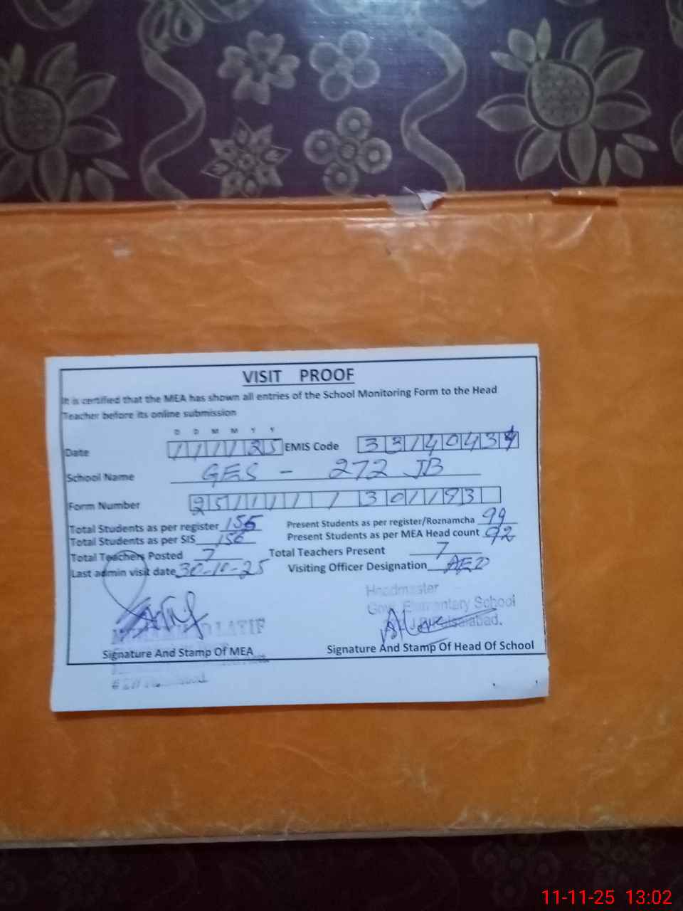 | EMIS Code: 33140434 | Name of School: GES CHAK 272 JB | |||