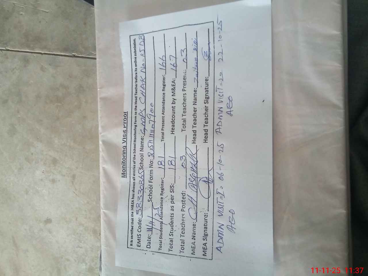 | EMIS Code: 38330865 | Name of School: GMPS CHAK NO.15 DB | |||