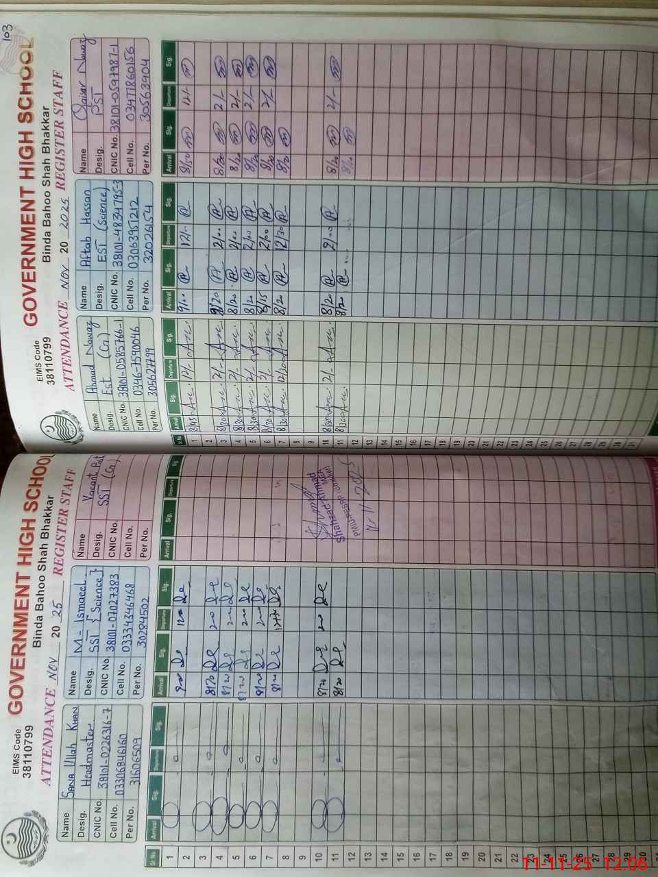 | Name: Sa**** Kh**** Designation: (School Headmaster's/Headmistress's) HEADMASTER Phone/Cell Number: 03**** |