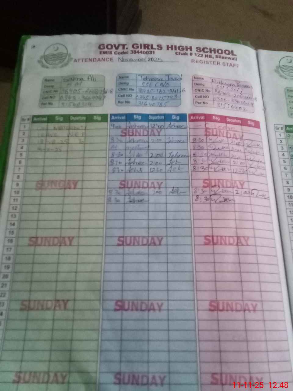 | CNIC | Full Name | Designation | R/C | Absence During Last Calender Month |