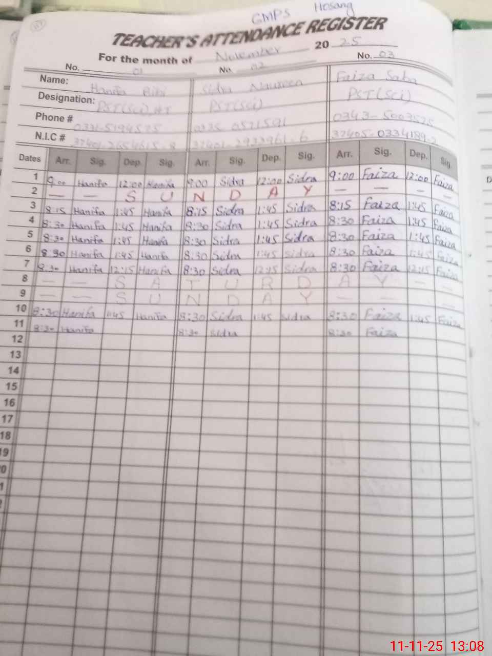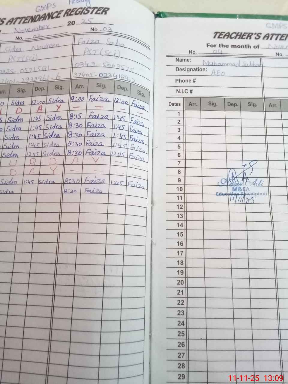 | Name: Ha**** BiBi Designation: (School Headmaster's/Headmistress's) PST Phone/Cell Number: 03**** |