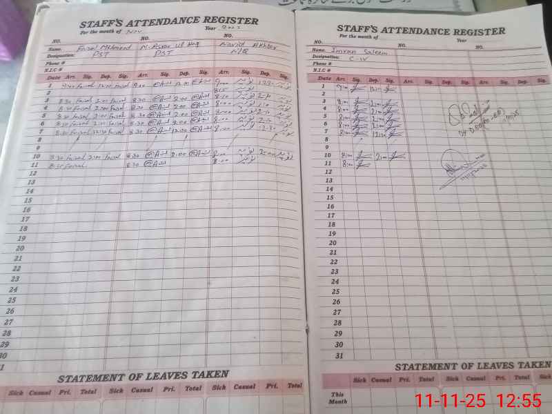 | CNIC | Full Name | Designation | R/C | Absence During Last Calender Month |