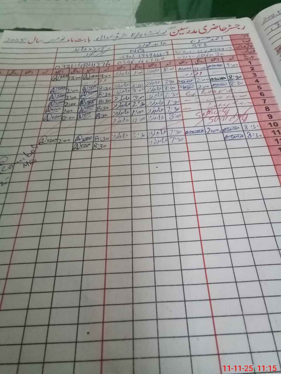 | CNIC | Full Name | Designation | R/C | Absence During Last Calender Month |