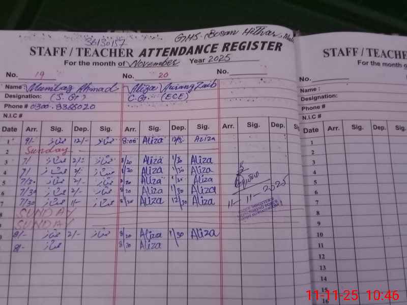 | CNIC | Full Name | Designation | R/C | Absence During Last Calender Month |