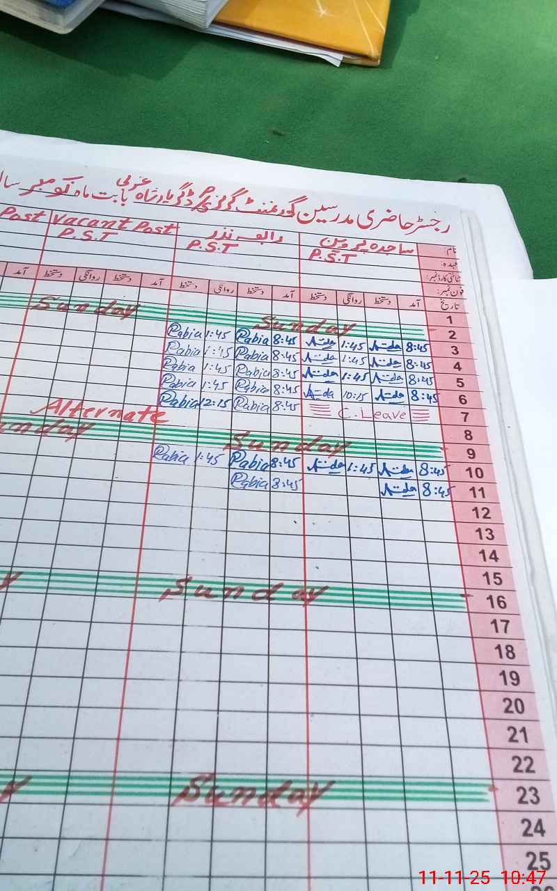 | CNIC | Full Name | Designation | R/C | Absence During Last Calender Month |