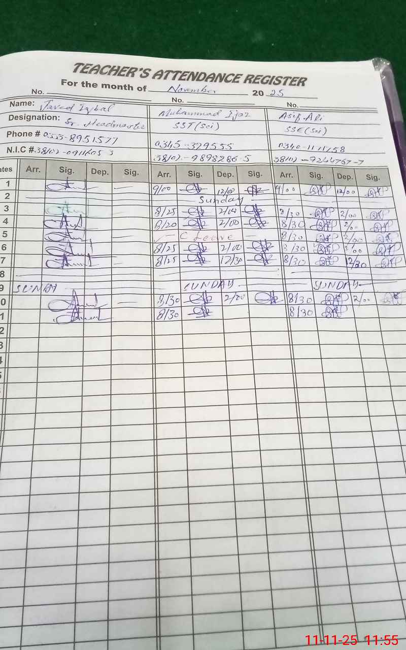 | Name: Ab**** Qa**** Designation: (School Headmaster's/Headmistress's) Sr HEAD MASTER Phone/Cell Number: 03**** |