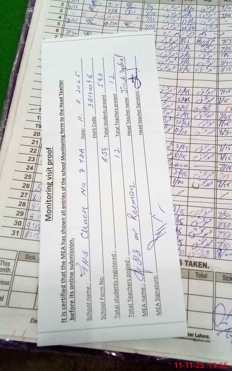 | EMIS Code: 38140046 | Name of School: GHS CHAK NO.7 TDA | |||