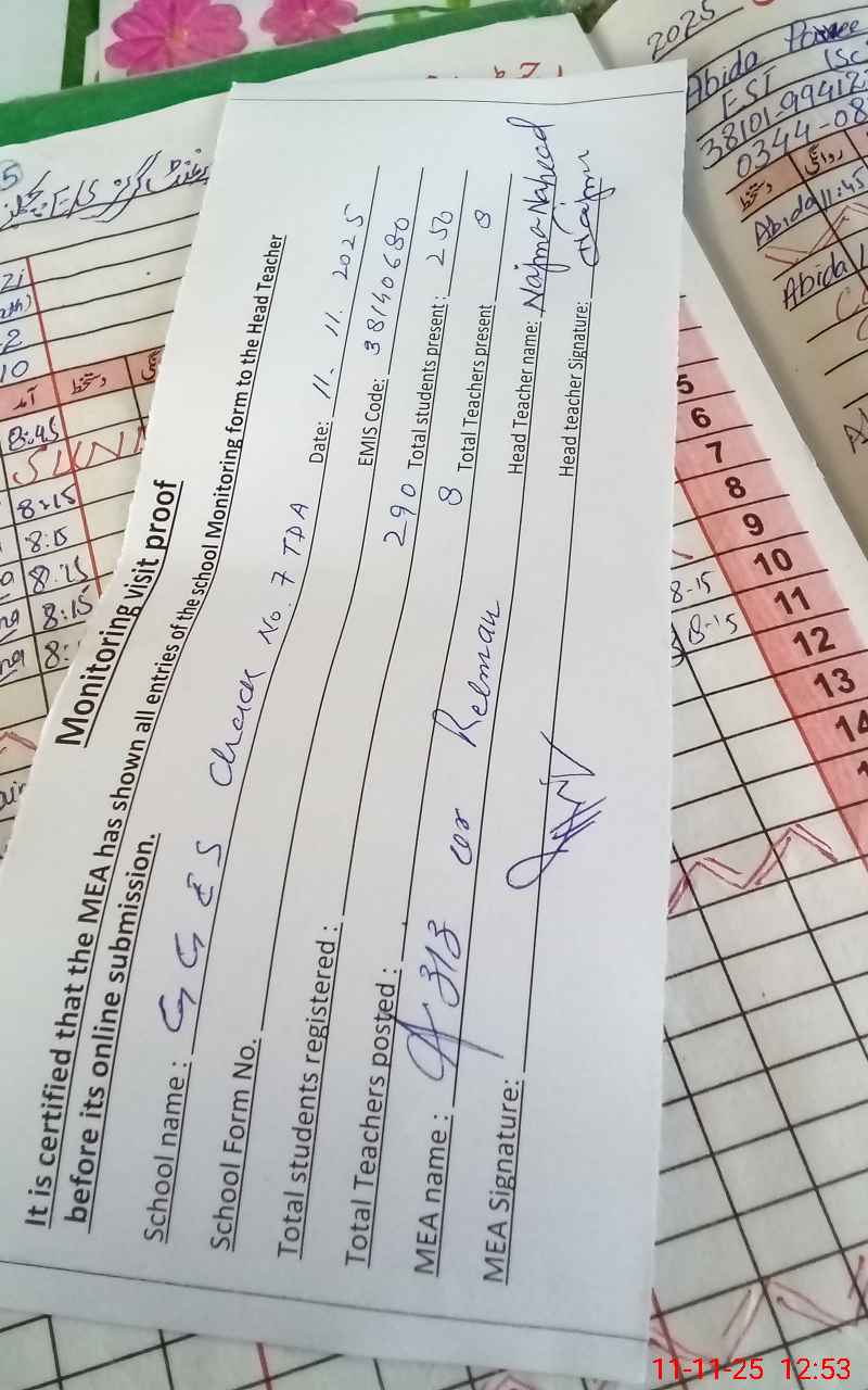 | EMIS Code: 38140680 | Name of School: GGES CHAK NO. 7 TDA | |||