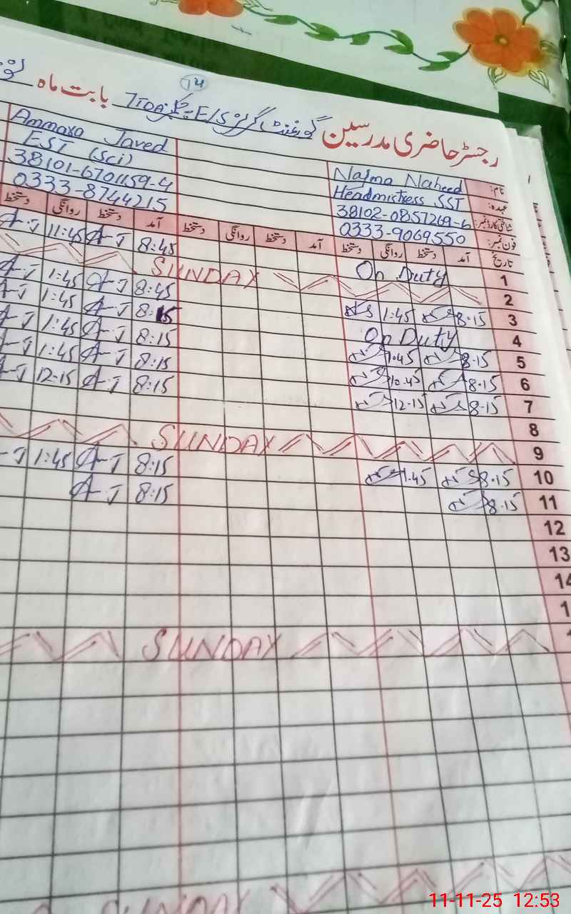 | Name: Na**** Na**** Designation: (School Headmaster's/Headmistress's) SST Phone/Cell Number: 03**** |