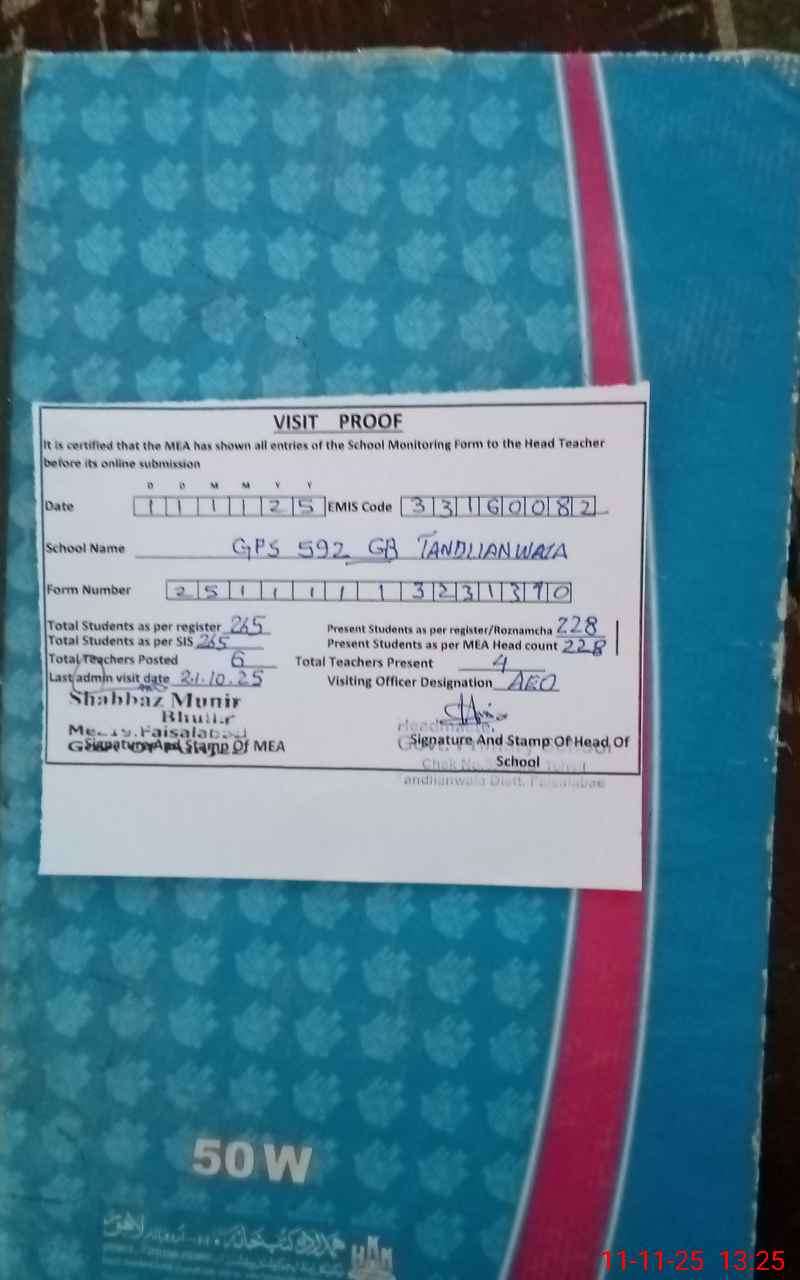 | Attendance Register | Head Teacher | MEA with School | Visit Proof |