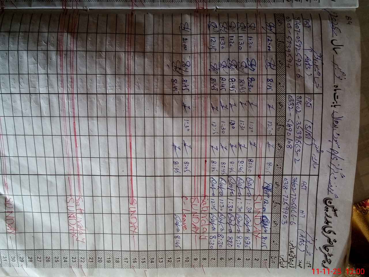 | CNIC | Full Name | Designation | R/C | Absence During Last Calender Month |