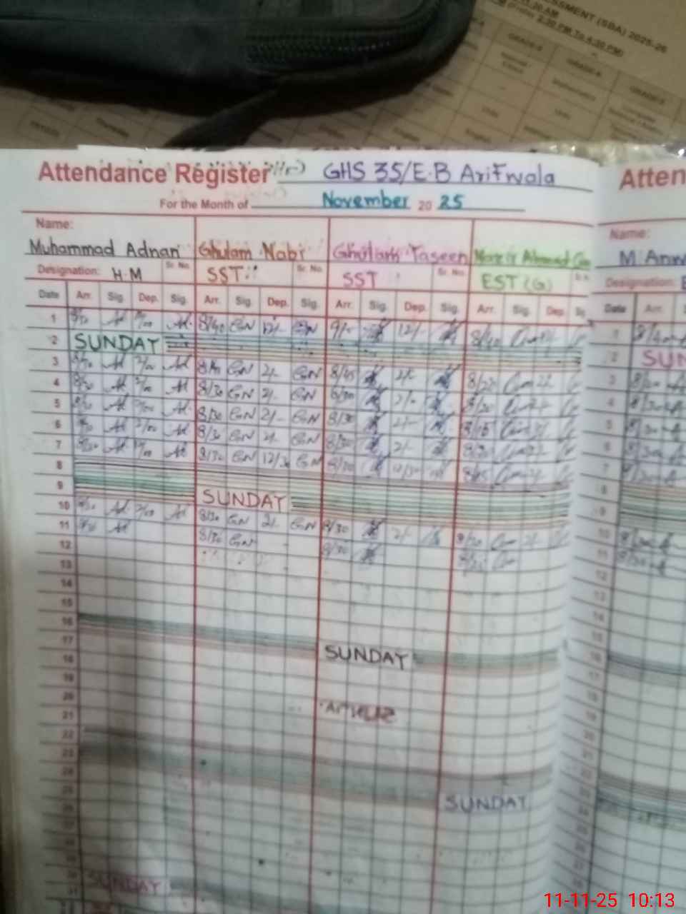 | CNIC | Full Name | Designation | R/C | Absence During Last Calender Month |