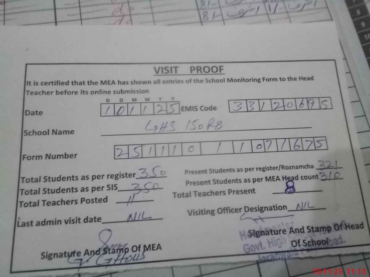 | Certified that this School was Inspected by the Undersigned MEA/DMO Today and the Information Stated Above is as Per Record. | |||||
