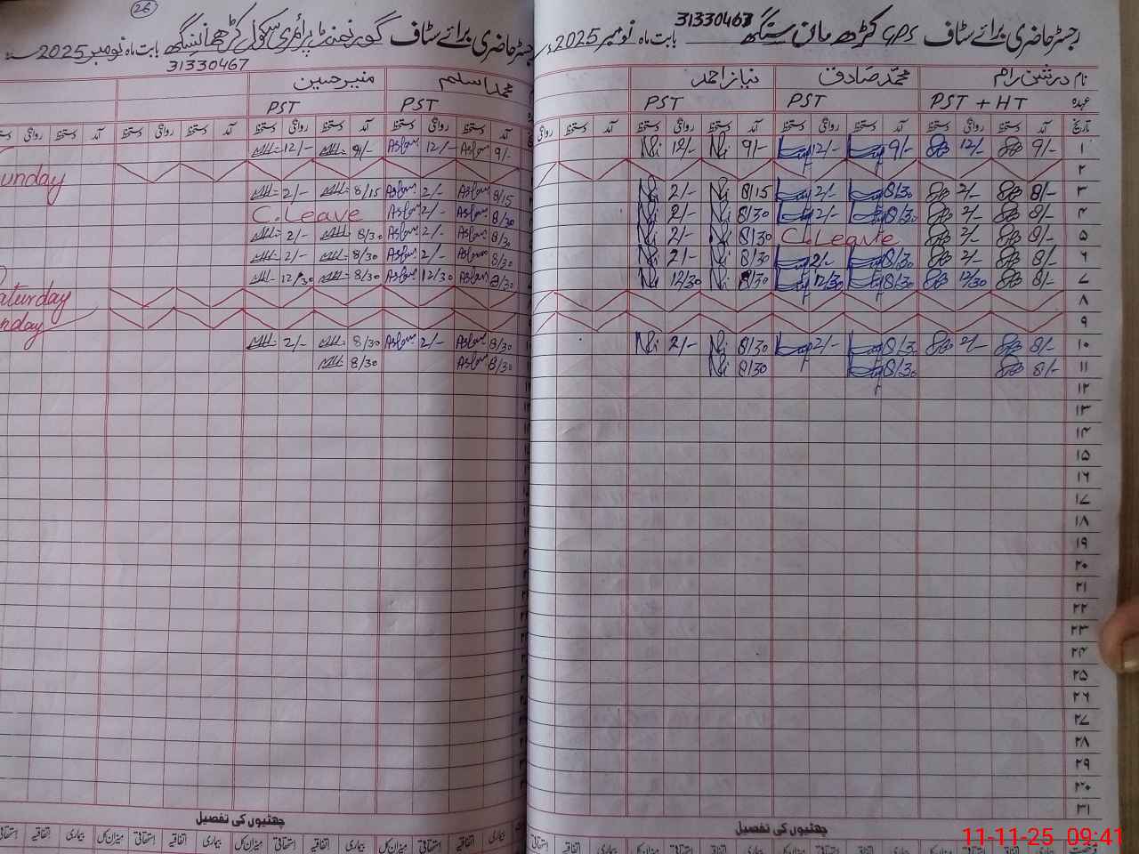 | CNIC | Full Name | Designation | R/C | Absence During Last Calender Month |