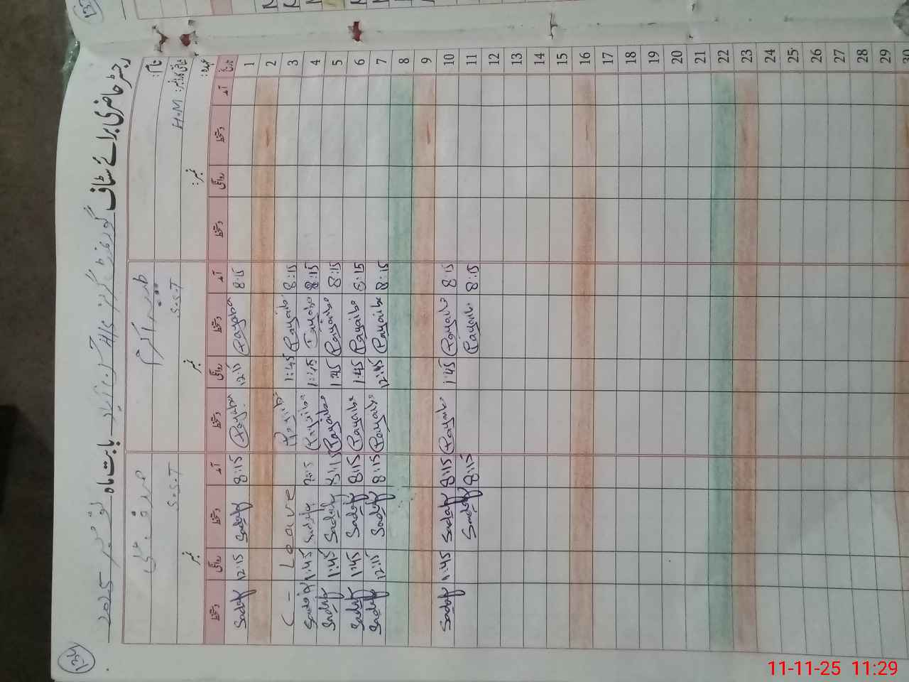 | CNIC | Full Name | Designation | R/C | Absence During Last Calender Month |